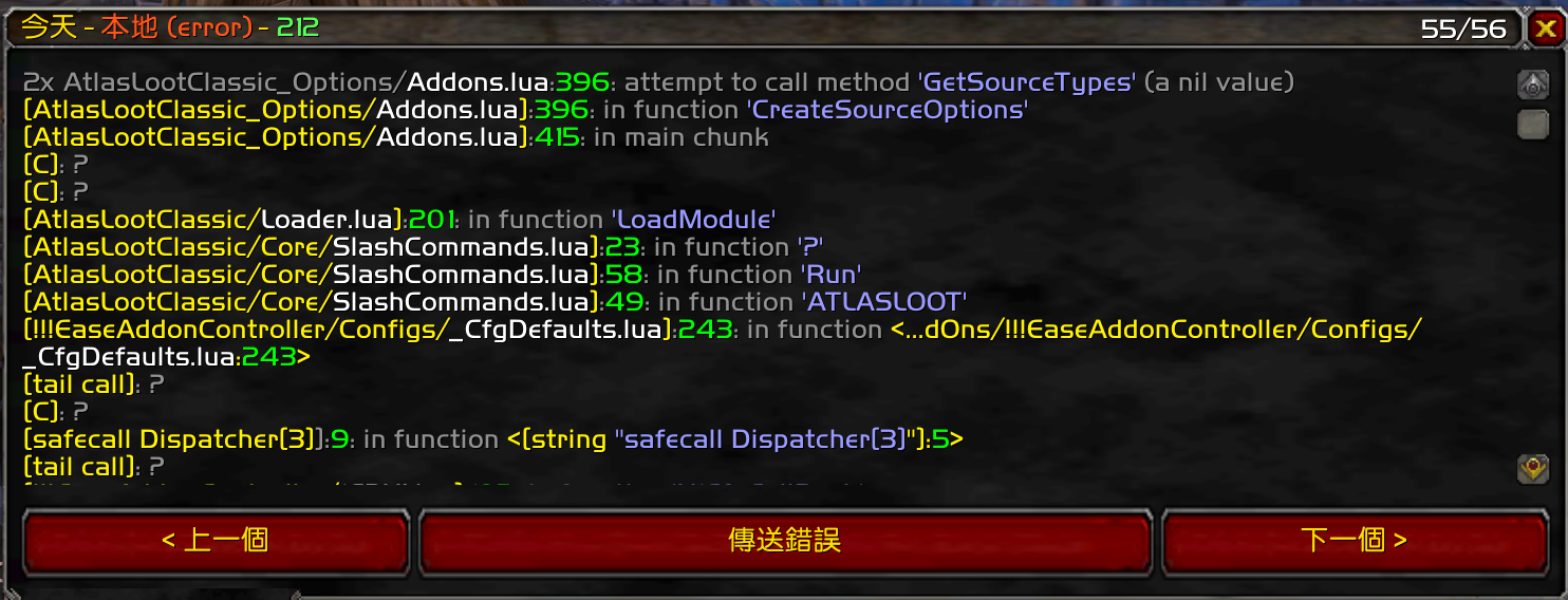 請試試看把 AtlasLootClassic 開頭的資料夾全部刪除,再重新下載安裝,不要用覆蓋檔案的方式更新。