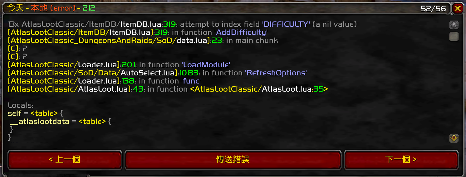 13x AtlasLootClassic/ItemDB/ItemDB.lua:319: attempt to index field 'DIFFICULTY' (a nil value)