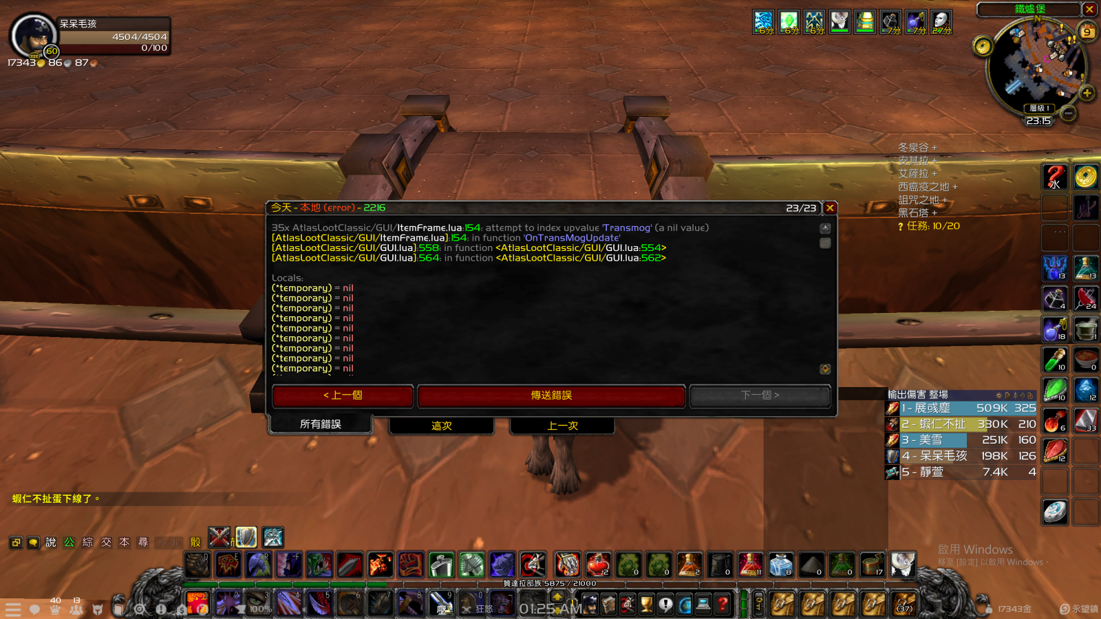 請看一下你的【副本戰利品查詢】插件版本是多少?