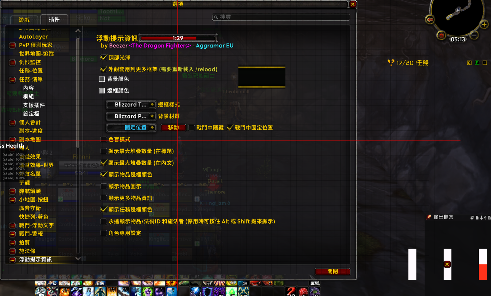 - 設定選項:從 Esc > 介面 > 插件 > 浮動提示資訊,移動位置和進行設定。